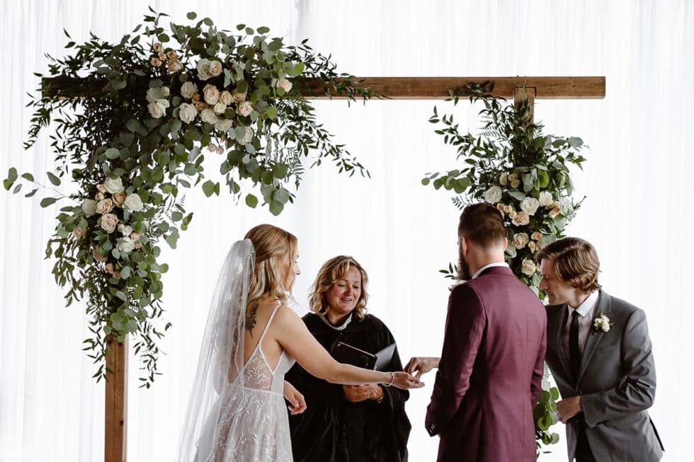 BBQ catering Wedding Catering at Waterfront Park Pavilion Marriage officiant at work